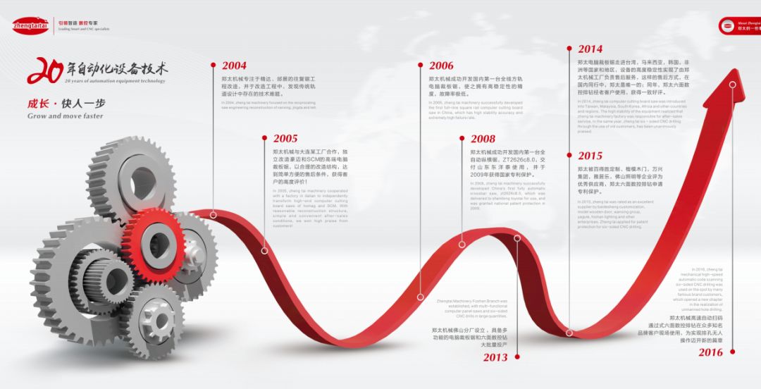 他們說這是不切實(shí)際,有一天有一臺機(jī)器會解決快速板材切割,只要放進(jìn)去就會解決板材六個面的打孔問題 ......就讓他們稱之為不切實(shí)際吧!我們稱之為遠(yuǎn)見!我們的企業(yè)宗旨并不是說做得多大,而是把企業(yè)做強(qiáng),做長,強(qiáng)在競爭力;長在長久,我們計劃做百年企業(yè),所以需要時間去沉淀,去增加我們的底蘊(yùn),強(qiáng)大核心競爭力。2002年到2019年