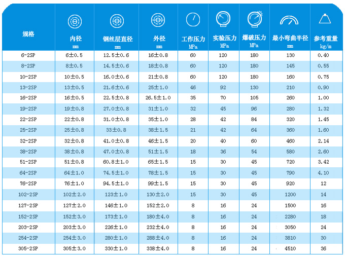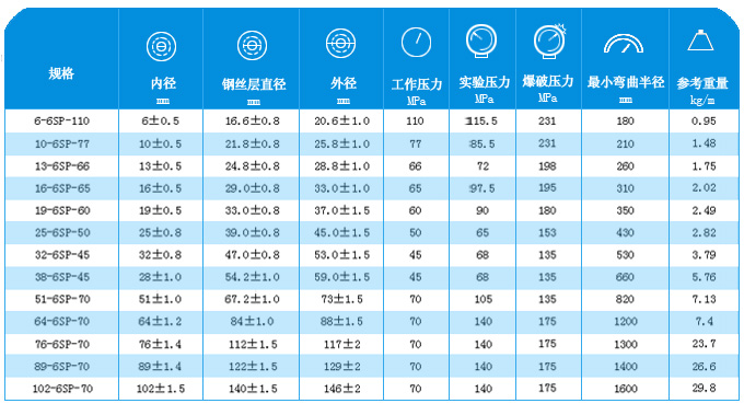 注:本企業(yè)纏繞膠管標(biāo)準(zhǔn)參照GB/T10544-03標(biāo)準(zhǔn),DIN2003、SAE100R9、R