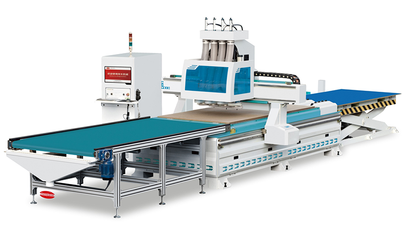 前沿的科技支撐規(guī)?;a(chǎn),讓企業(yè)始終處于高效率運(yùn)作當(dāng)中。 一次性上下料作業(yè)滿足開料、銑形、垂直鉆孔工藝,大幅度降低 人工使用量,提高生產(chǎn)80%工作效率,數(shù)控開料連線未來家居生 產(chǎn)工藝的使用方向。